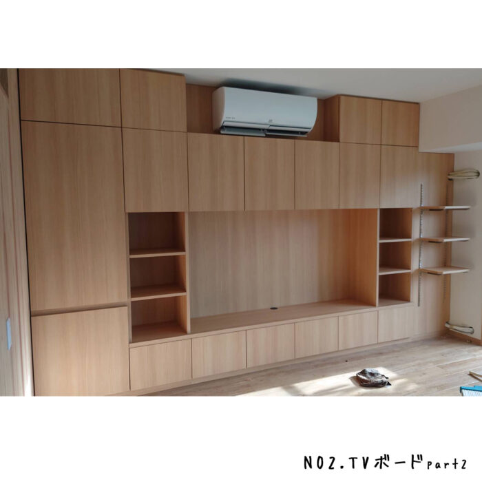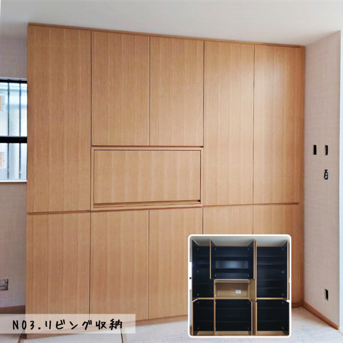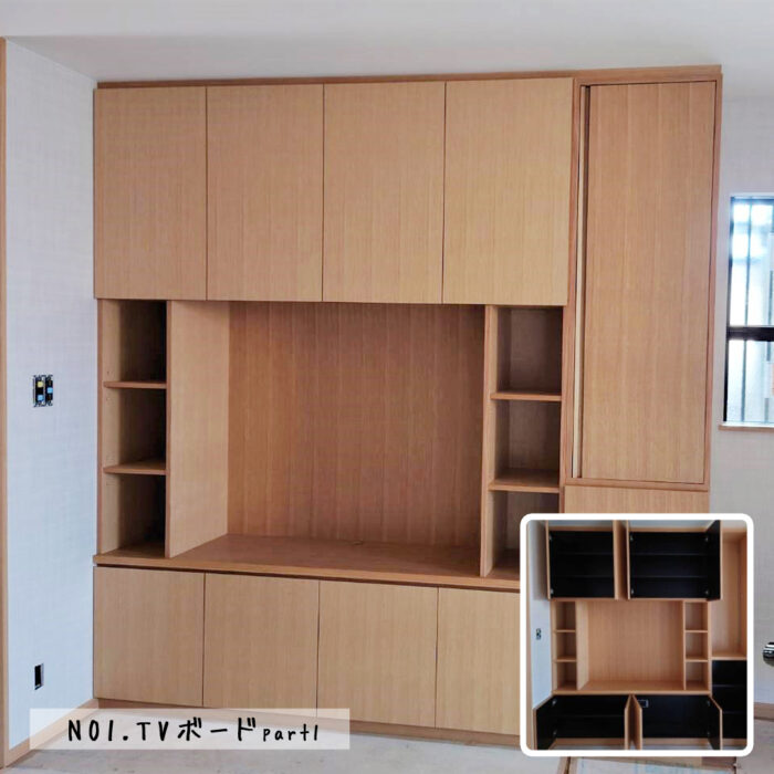 造作家具は、ぴったりと隙間なく設置できるので無駄な空間がなく、地震などの揺れにも強いのが特徴です👌